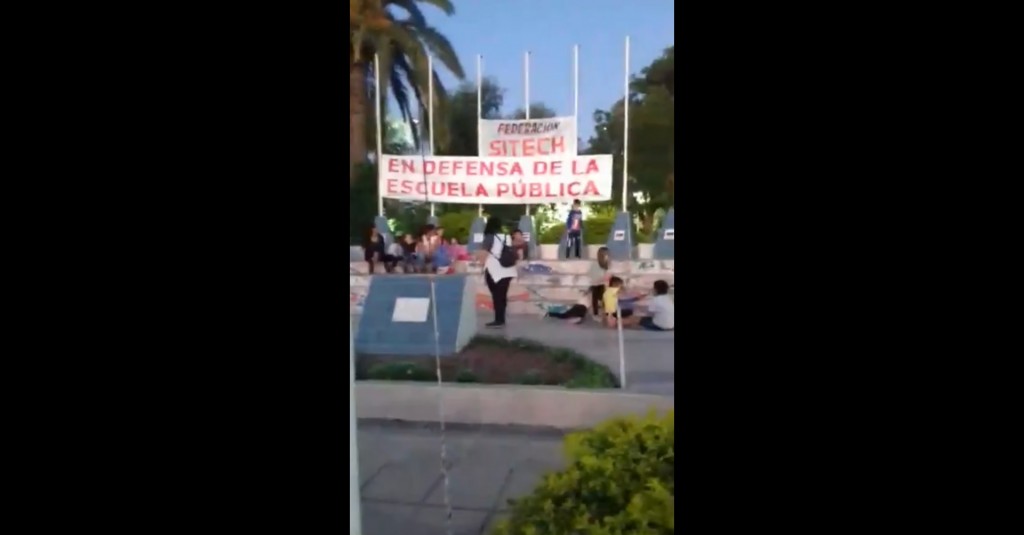 “…Una de las actividades que programamos dentro de Federación SITECH, es apoyar a los docentes y padres de la Escuela 755 de San Bernardo, donde se tiene previsto cerrar, doce grados, por ende, padres y docentes están unidos resistiendo a este cierre, solicitaron nuestro apoyo, nuestra colaboración… por eso que, luego de una asamblea, se decidió por el acampe que, comienza hoy a las 18 hs. hasta doblarle el brazo al Gobierno, o que den marcha atrás en esta decisión de dejar sin fuentes laborales a los docentes…”, remarcó Olga de Federación SITECH.