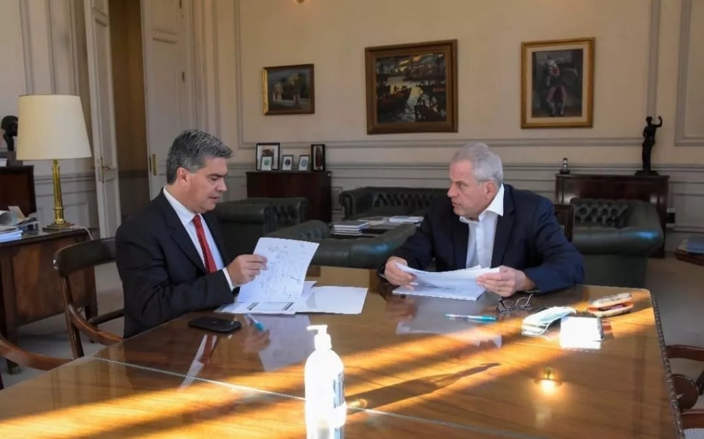 El mandatario provincial y el funcionario nacional se reunieron para realizar un seguimiento de obras de infraestructura educativas que se están desarrollando en la provincia. El paquete consta de 25 proyectos para remodelar y construir escuelas primarias, secundarias y jardines de infantes.