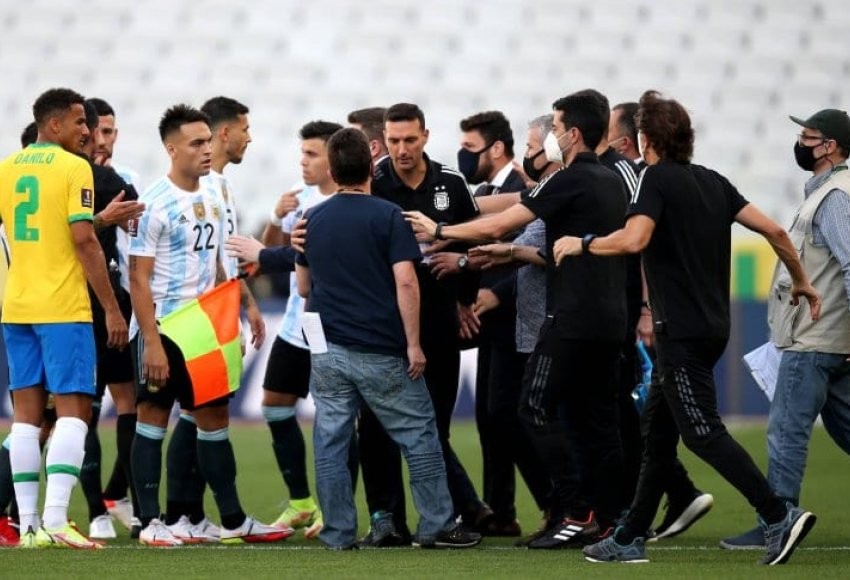 El encuentro entre ambos seleccionados sudamericanos, clasificados a la Copa del Mundo Qatar 2022, fue suspendido el 5 de septiembre en San Pablo, a los cinco minutos de juego con el marcador 0 a 0, cuando autoridades sanitarias brasileñas ingresaron a la cancha para objetar la participación de cuatro jugadores argentinos.