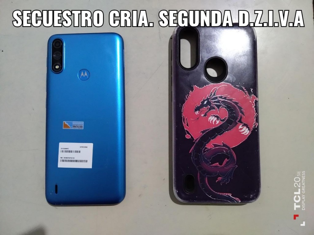 El personal policial, abocado a tareas investigativas, visualizan en la intersección de Av. Florencio Varela y Naranjeros, a dos sujetos de similares características, quienes al notar la presencia policial, se dan a la fuga arrojando un teléfono celular coincidente con el denunciado como sustraído, procediendo al secuestro del mismo.