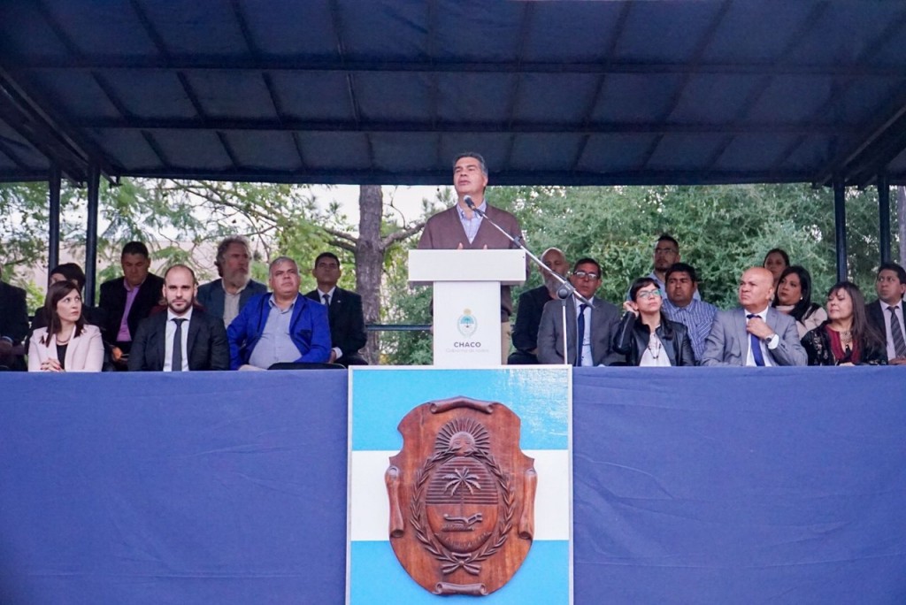 Este viernes en General José de San Martín, el gobernador Jorge Capitanich participó del acto por el 113 aniversario de la localidad. Junto a la vicegobernadora Analía Rach Quiroga y el intendente municipal, Mauro Leiva, hicieron entrega de reconocimientos a vecinos, vecinas de la localidad, así como distinciones y medallas a trabajadoras y trabajadores de la salud y veteranos de la guerra de Malvinas. Además, otorgaron 11 títulos de propiedad a familias de la localidad.