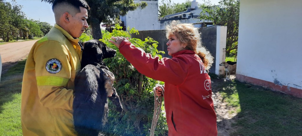 En la mañana de hoy, División de Bomberos, rescató a un perro de un desagüe, ubicado entre las calles, Boulevard San Martín y Necochea, de la ciudad de Villa Ángela. Luego de completar la misión, se entregó al canino a una de las integrantes del “Refugio Azul”.