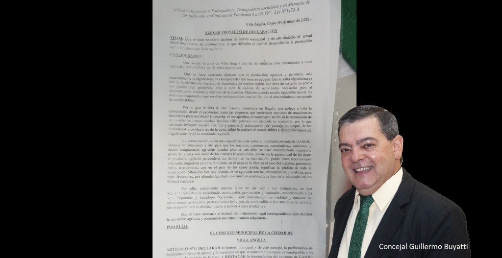 “…En unas reuniones que tuvimos con dueños de estaciones de servicios, nos manifestaban la preocupación por la reducción de los cupos de gasoil para los estacioneros. Esto, por parte de las refinerías, de las plantas, no pasa por una cuestión económica ni nada por el estilo, el hecho es que no hay directamente, no están entregando en las plantas, las refinerías, o cual es el problema, pero lo que sí, nos llama la atención es esta disminución de cupo, es de todas las marcas, o sea no es una sola marca de combustible, entonces se ven afectadas todas las estaciones de servicios y en plena campaña algodonera, donde están las máquinas trabajando cosechando, los camiones, los tractores, es decir, todo el movimiento que hay con la campaña algodonera, las empresas de mantenimiento de caminos, en salud pública las ambulancias, la policía, el municipio, es decir, todo el movimiento se ve afectado en nuestra economía con la disminución de gasoil…”, explicó el Concejal Buyatti.