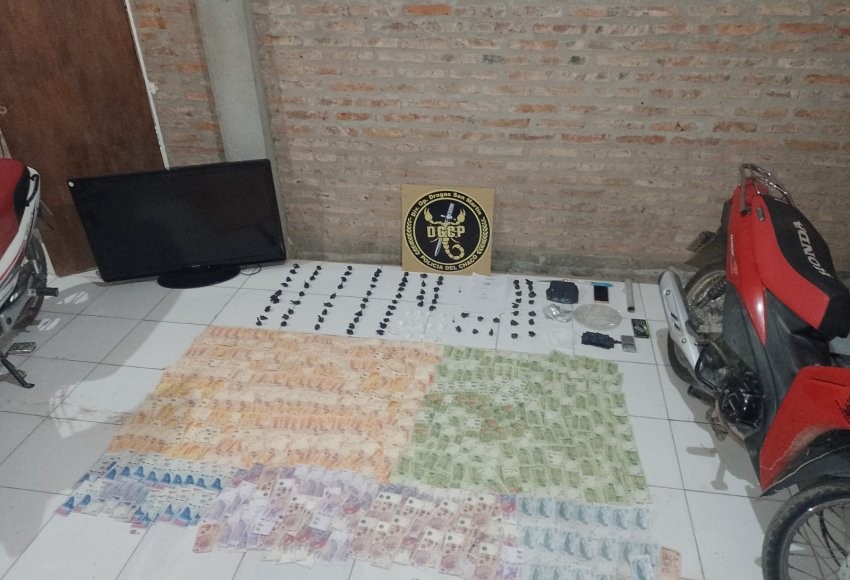 Del registro en la vivienda del Barrio 9 de Julio se procedió al secuestro de 30 bochitas conteniendo sustancia blanquecina que posteriormente se comprueba que se trata de Cocaina con un peso de 5 gramos, incautado también un teléfono celular, una motocicleta Gilera Smash 110cc., y dinero en efectivo por la suma de $129.090, quedando detenido un hombre de 51 años.