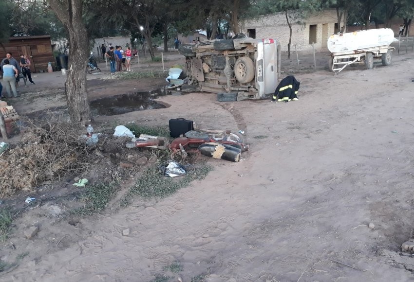Los protagonistas fueron una moto tipo 50 cilindradas, guiada por un hombre que falleció en el acto, y una camioneta Toyota Hilux, guiada por una persona mayor de edad que iba acompañada por una joven de 25 años. Ambos fueron asistidos en el lugar y luego trasladados en ambulancia hasta el hospital local.
