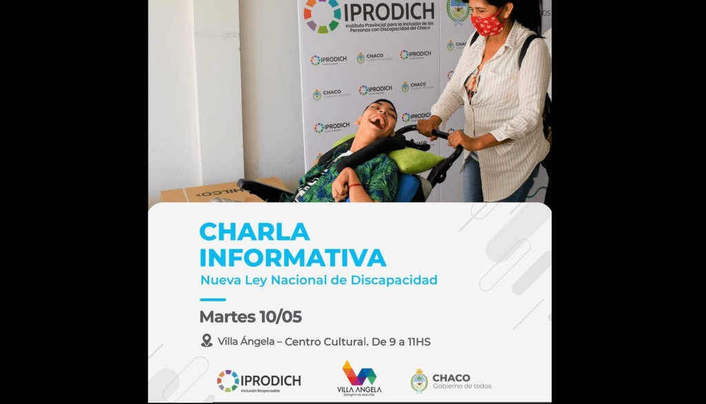 El Instituto Provincial para la Inclusión de las Personas con Discapacidad del Chaco (IPRODICH) realizará, este martes en Villa Ángela y Charata, charlas informativas sobre el proceso de elaboración de la Nueva Ley Nacional de Discapacidad, impulsada por la Agencia Nacional de Discapacidad (ANDIS). Los encuentros se realizarán de 9 a 11 en el Salón Freire (Villa Ángela), y de 17 a 19 en el Salón de la Asociación Española (Charata).