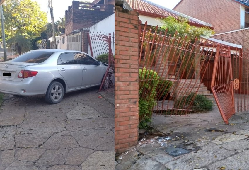 En un insólito accidente múltiple, un auto manejado por una policía terminó incrustado en las rejas de la casa de una vecina en calle Marcelo T. de Alvear 1.448 de Resistencia.