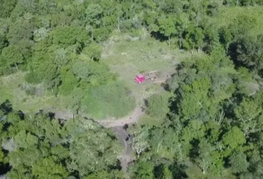 Los agentes llevaron a cabo la diligencia judicial y, mediante la utilización de un drone, lograron visualizar entre las malezas un vehículo con carga de madera.