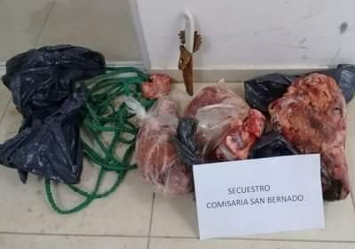Tal es así, que luego de explicarle la situación a la mujer que se encontraba al momento del arribo policial, esta hizo entrega voluntaria de una cabeza de animal vacuno y restos cárneos con un pesaje aproximado de ocho kilos, un cuchillo y una soga, elementos utilizados para la comisión del hecho.