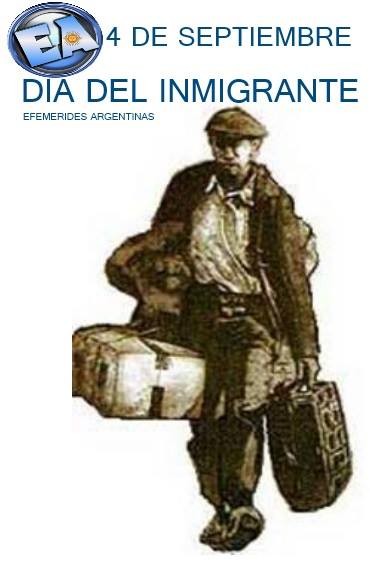 El Día del inmigrante en la Argentina, se celebra los 4 de septiembre de cada año desde que se la estableció mediante el Decreto Nº 21.430 del año 1949, siendo presidente Juan Domingo Perón. Se eligió esa fecha para recordar la llegada de los inmigrantes al país en recuerdo de la disposición dictada por el Primer Triunvirato en 1812, que ofreciera “su inmediata protección a los individuos de todas las naciones y a sus familias que deseen fijar su domicilio en el territorio”.