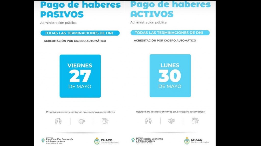 Ese mismo día, estarán acreditados los salarios de los trabajadores activos, para todas las terminaciones de DNI; que podrán pasar por ventanilla a partir del martes 31 de mayo.