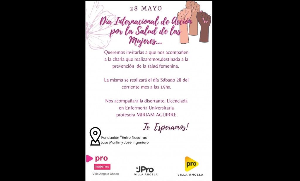 Villa Ángela: EL PRO INVITA A UNA CHARLA DE PREVENCIÓN DE LA SALUD DE LAS MUJERES PARA ESTE SÁBADO | “es un espacio pensado exclusivo para y por las mujeres”