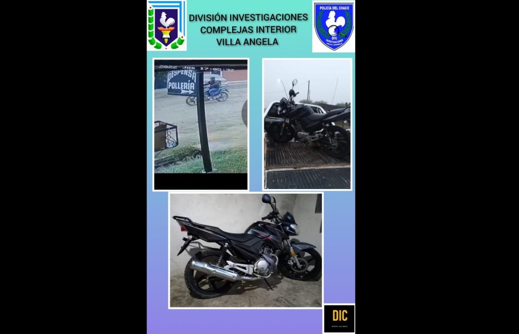 Personal de Investigaciones Complejas de la Ciudad de Villa Ángela después de recabar información logró dar con el paradero de una moto denunciada en el día de ayer. La misma se hallaba abandonada por el “camino alto” en una zona boscosa conocida como “La Viruela”.