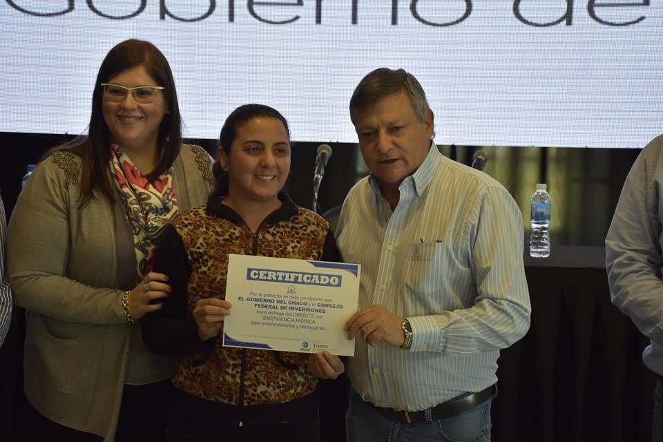 En el marco de la 6° Entrega de los Créditos por Emergencia Hídrica realizada en la ciudad de Villa Ángela, la Secretaria de Empleo y Trabajo, Maria Natalia Mustillo, destacó las gestiones del Gobernador Domingo Peppo ante el Consejo Federal de Inversiones para lograr esta importante asistencia crediticia, la cual está destinada a Productores, Comerciantes y Emprendedores que fueron afectados por las inundaciones de este año.