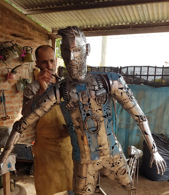 El artista chaqueño que construyó una escultura de Messi con chatarra
