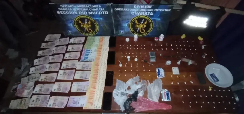Esta madrugada, Agentes la División Operaciones Drogas Interior Charata en conjunto con la sección Operaciones Rio Muerto, allanaron un domicilio en el Barrio Norte, donde secuestran 125 dosis de cocaína y seis envoltorios de Marihuana. Cuatros personas entre 25, 35, 37 y 59 años fueron detenidos.