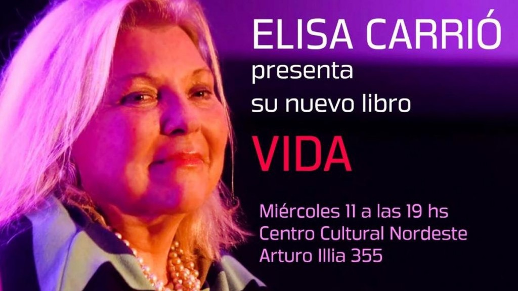 La diputada nacional Elisa Carrió llegará a Resistencia el próximo miércoles, para presentar su libro "Vida", en plena campaña electoral con miras a los comicios del 27 de octubre.