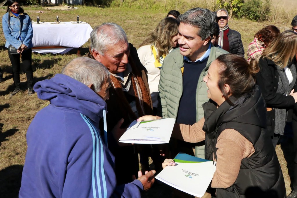 Asimismo, el mandatario provincial entregó en esa localidad 36 títulos de propiedad con el objetivo de garantizar el acceso a la tierra de familias rurales. “Siempre es un gran gusto asistir a estas entregas, porque rescatamos el esfuerzo que ponen las familias locales para la producción y el desarrollo de nuestra provincia y muchas veces se esperan muchísimos años por su título de propiedad”, expresó el gobernador.