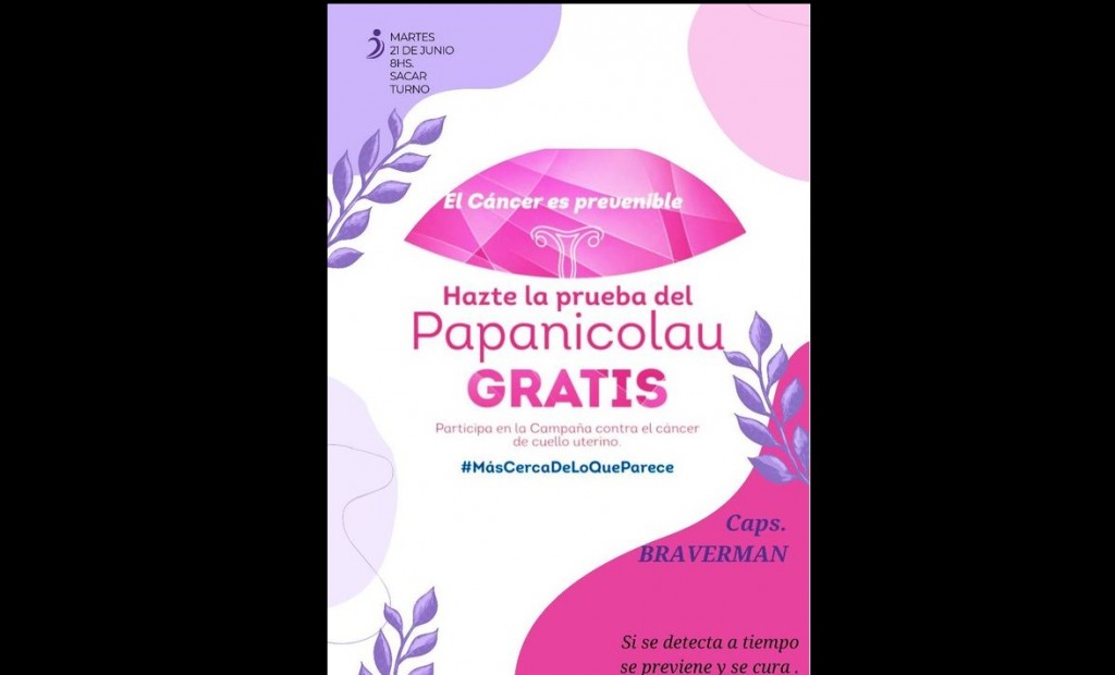 El día martes 21 de junio se realizará una jornada gratuita en el Centro de Salud Braverman, en donde realizarán estudios de Papanicolau a modo de prevención y concientización del cáncer de útero y HPV.