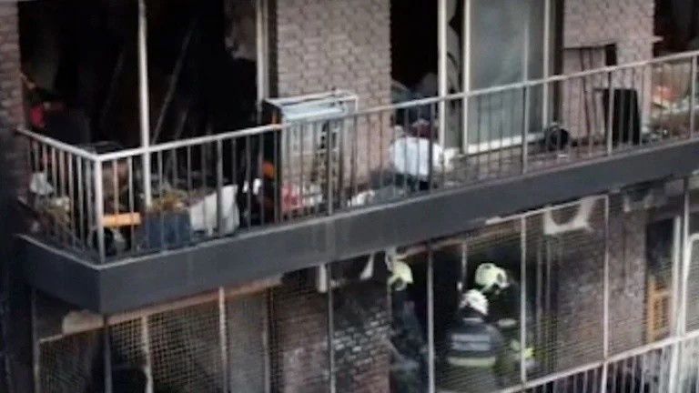 Personal de Bomberos de la Ciudad recorre todos los pisos del edificio siniestrado en el barrio porteño de Recoleta. (Captura C5N)