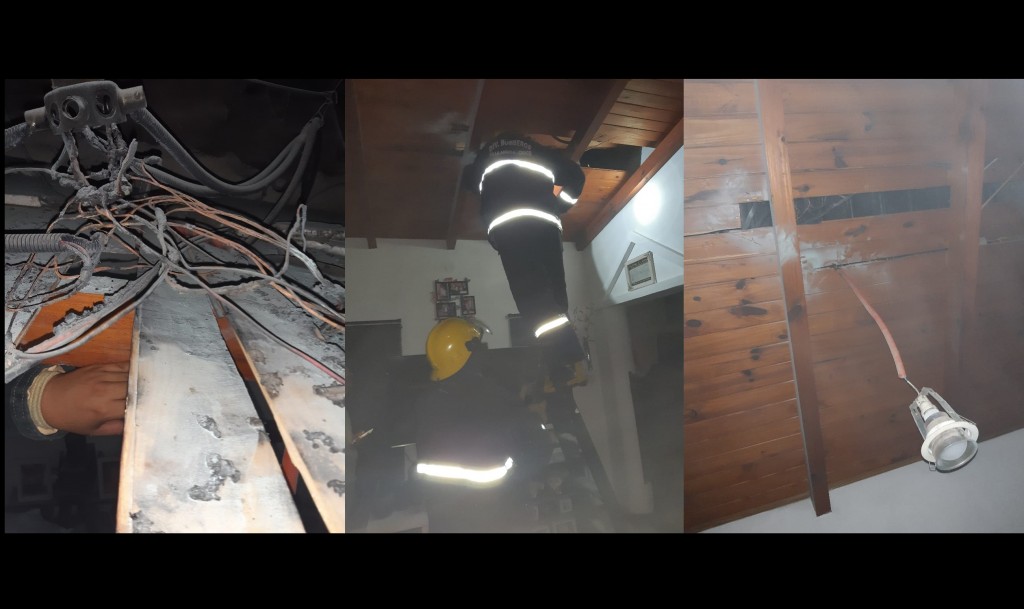 El fuego en su accionar afectó parte del cableado de la instalación eléctrica y cielorraso de madera machimbre.