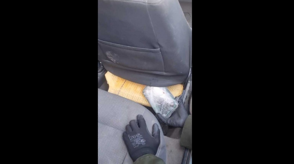 Al momento de la inspección, los funcionarios observaron a simple vista anomalías en el respaldo del asiento de lado acompañante, por lo que procedieron a levantar el tapizado y constataron la presencia de nueve paquetes rectangulares que, tras ser sometidos a pruebas de campo Narcotest, dieron resultado positivo para cocaína con un peso total de 9 kilos 829 gramos.