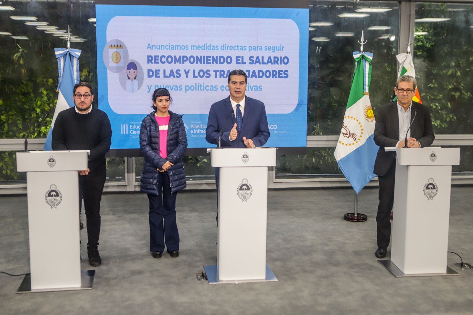 El gobernador Jorge Capitanich y la vicegobernadora Anal�a Rach Quiroga, junto al ministro de Planificaci�n, Econom�a e Infraestructura, Santiago P�rez Pons y al ministro de Educaci�n, Aldo Lineras, anunciaron un nuevo aumento salarial para la administraci�n p�blica en el �mbito del Poder Ejecutivo. Se trata de un adelanto del 7% correspondiente al mes de octubre, para toda la administraci�n, a excepci�n de empresas p�blicas.