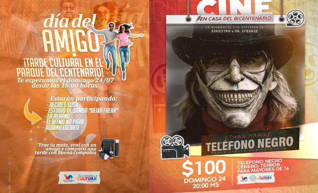 Desde la secretaria de cultura, turismo y deportes del municipio de invita a la comunidad a participar el domingo 24 en el Parque del Centenario para celebrar el Día del Amigo con artistas locales. También, se reactiva el cine Bernardo Álvarez ese día mismo día con una película de terror que dará inicio a las 20 hs.