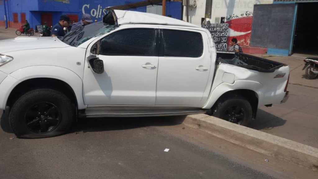 Este lunes, cerca del mediodía, se produjo un accidente de tránsito en la avenida Alvear y la calle Fray Rossi, entre una camioneta Toyota Hilux, blanca, un automóvil Renaul Clio, gris y una motocicleta Suzuki, roja.