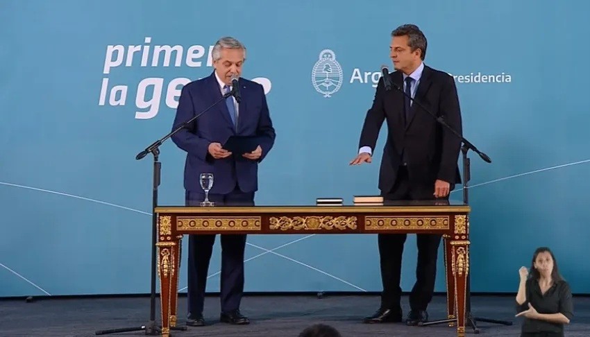 Sergio Tomás Massa finalmente juró como ministro de Economía, Desarrollo Productivo y Agricultura de la Nación, cargo en el que había sido confirmado el pasado jueves.