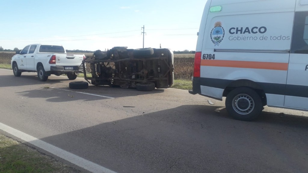 Un vehículo sufrió un despiste terminó volcando, mientras era remolcado por una camioneta en la Ruta 95 a la altura de la localidad de San Bernardo. El conductor del rodado fue llevado al Nosocomio por las lesiones sufridas.
