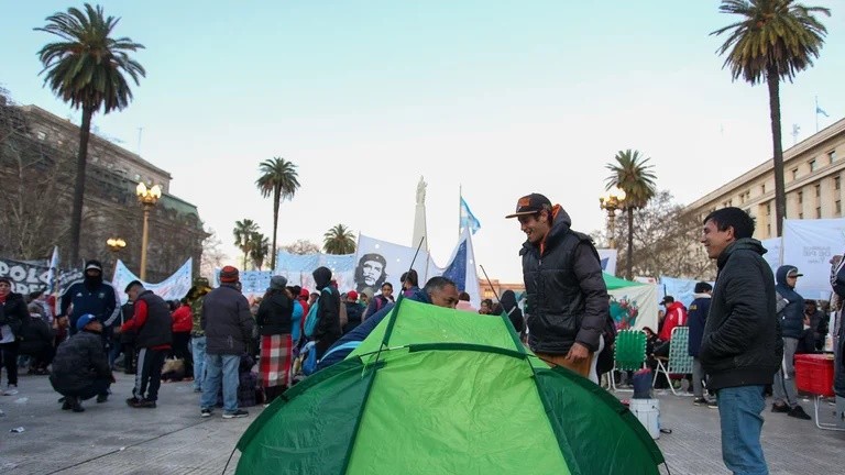 Los piqueteros pasaron la noche en Plaza de Mayo y continúa el acampe