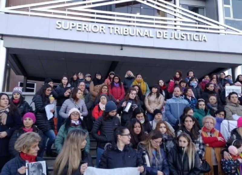 Carla Kirstein estuvo presente junto a su abogada, la exgobernadora de Tierra del Fuego Fabiana Ríos, en la movilización llevada a cabo frente al Superior Tribunal de Justicia en la ciudad de Ushuaia.