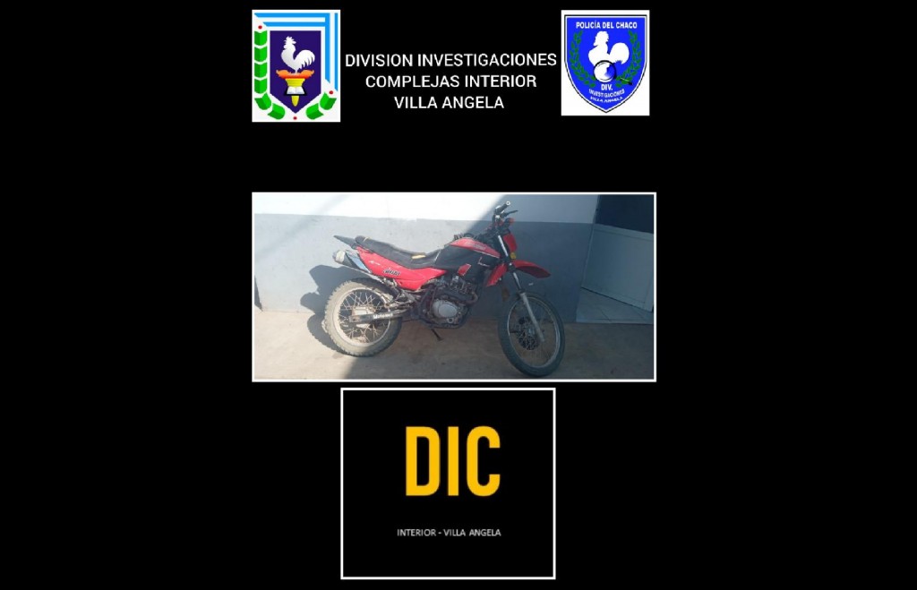 El personal de la División investigación, mediante una denuncia realizada en la comisaría segunda por un ciudadano de 57 años, donde el pasado 11 de agosto, se da cuánta que le sustrajeron desde su domicilio una motocicleta de 150 cilindradas, color roja.