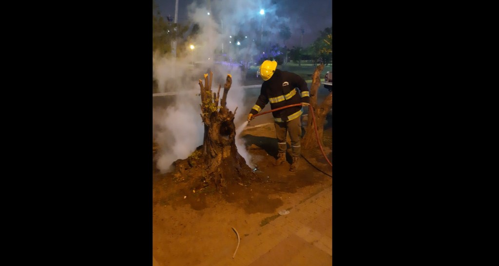 El incendio se provocó con pastizal y basura y tomó el tronco de un árbol de paraíso.