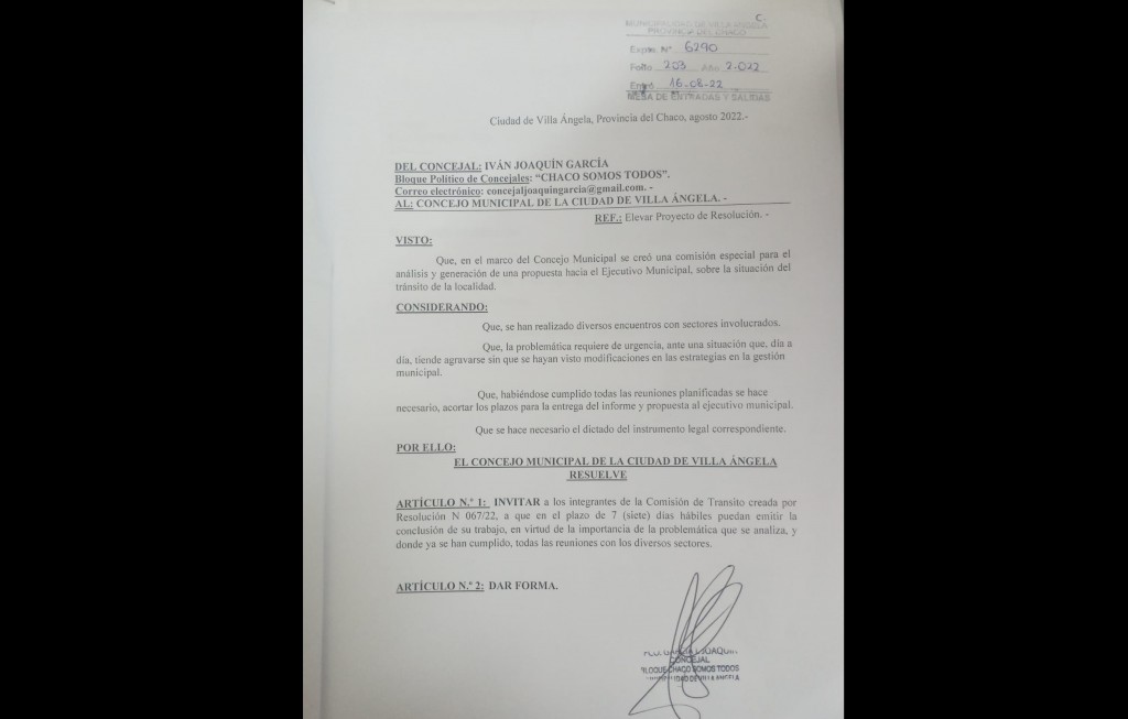 Villa Ángela: Cjal. Joaquín García | “LA COMISIÓN DE TRÁNSITO DEBE EMITIR UN DICTAMEN LO MÁS ANTES POSIBLE”