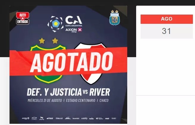 Furor por conseguir las entradas del partido de Copa Argentina entre River y Defensa y Justicia que se jugará en el estadio de Sarmiento, en la ciudad de Resistencia. Los hinchas se indignaron con la venta online ya que después unos minutos, ya no quedaban tickets.
