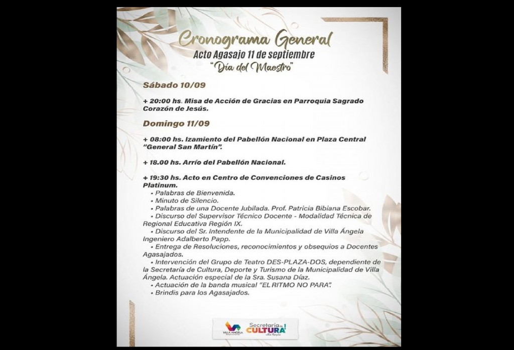 Villa Ángela: EL MUNICIPIO INVITA A LA COMUNIDAD AL ACTO HOMENAJE A LOS MAESTROS