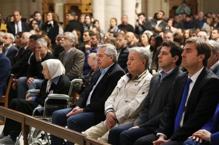 En la "Misa por la Paz y la Fraternidad de los Argentinos" impulsada por el intendente oficialista de Luján, Leonardo Botol, el jefe de Estado se sentó en primera fila del importante templo católico, con el ex mandatario Eduardo Duhalde sentado a su izquierda y la referente de Madres de Plaza de Mayo Vera Jarach.