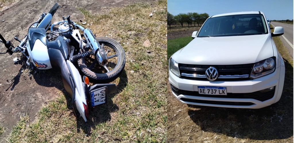 Villa Ángela: COLISIÓN ENTRE UNA CAMIONETA AMAROK Y UNA MOTOCICLETA DEJÓ A LOS OCUPANTES DE LA ULTIMA CON VARIAS LESIONES