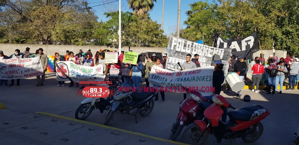 Varios grupos sociales se hicieron presentes en el Hospital Salvador Mazza, en apoyo a la lucha de los trabajadores de Renta Mínima Progresiva.