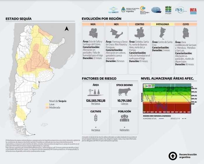 El informe, elaborado con fecha 1 de septiembre de 2022, revela que el NEA presenta la sequía con mayor tiempo de duración del país, ya que lleva 26 meses. Esta región está delimitada por Formosa y oeste del Chaco, los ríos Paraná y Paraguay. La afectación es a cultivos, ganadería y pesca artesanal.