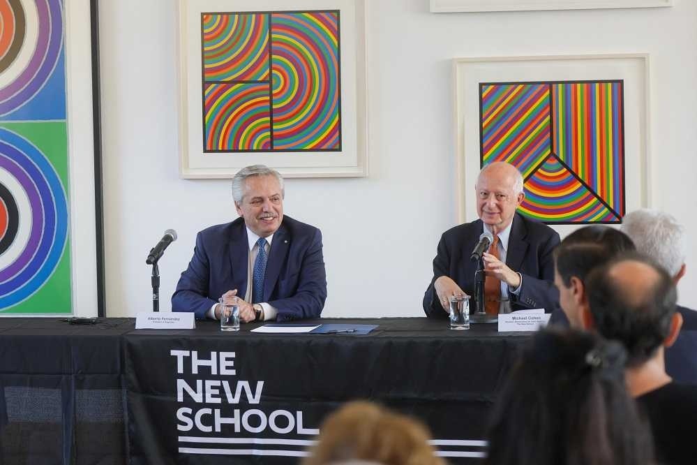 El presidente Alberto Fernández brindó este mediodía una conferencia, en su calidad de titular pro tempore de la CELAC, en la Universidad The New School de Nueva York, en donde afirmó: “Tenemos que exigir la paz para empezar a construir un mundo que nos incluya”.