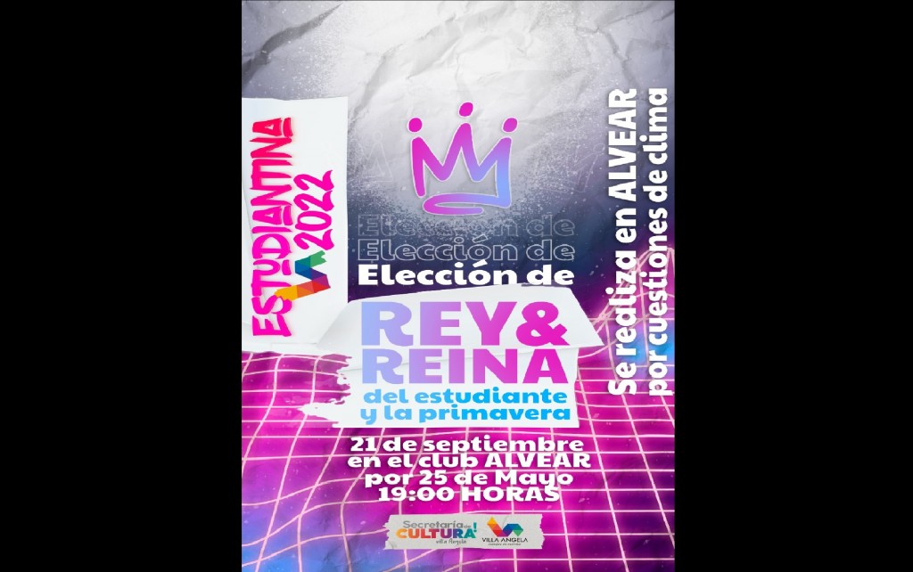 Villa Ángela: ESTUDIANTINA 2022 | LA ELECCIÓN DE LA REINA Y EL REY SE REALIZARÁ EN EL CLUB ATLÉTICO ALVEAR