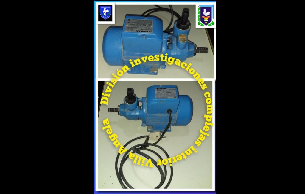 Efectivos de la División Investigaciones Complejas realizaban tareas específicas sobre un hurto en el cual damnifica una mujer de 48 años, quien se dio cuenta que le había sustraído una bomba centrífuga desde su patio trasero.