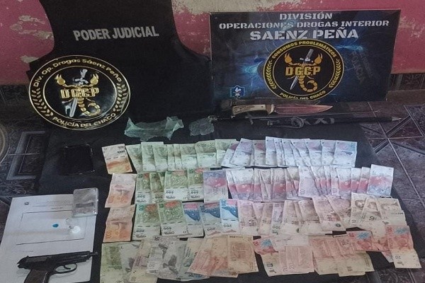 Sáenz Peña: EN ALLANAMIENTO SECUESTRAN COCAINA, DINERO, UN ARMA DE FUEGO Y DETIENEN A UN HOMBRE
