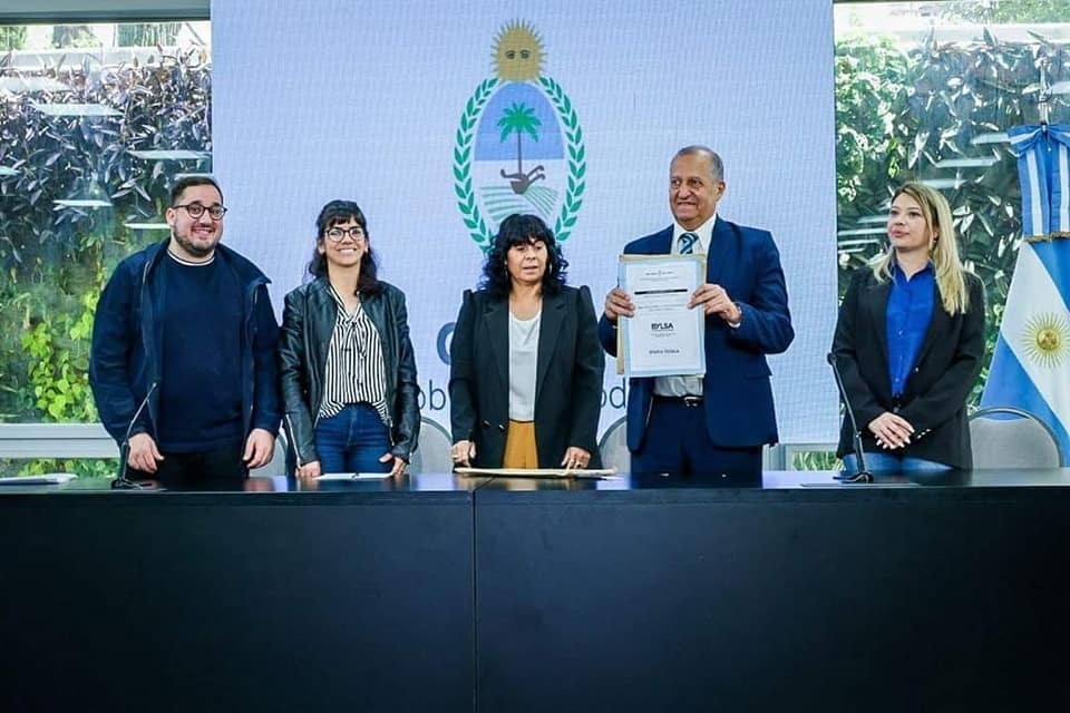 Junto al ministro de Economía, Planificación e Infraestructura, Santiago Pérez Pons y la vicegobernadora, Analía Rach Quiroga.