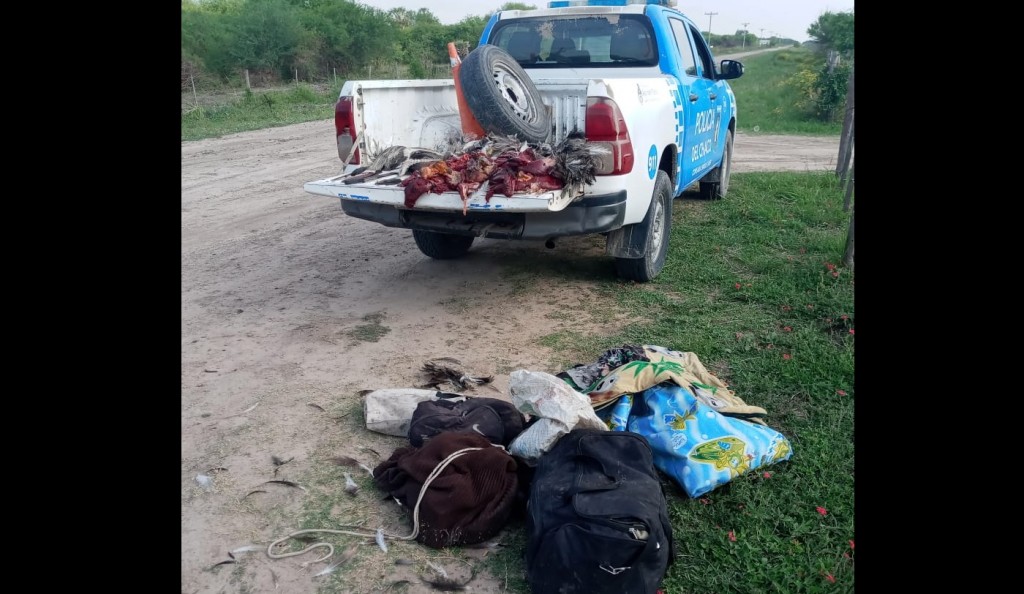 El sábado efectivos del destacamento de La Viruela realizaban controles motovehicular, cuando detiene el paso de 4 motocicletas guíadas por 4 masculinos todos oriundos de la ciudad de Villa Ángela quiénes transportaban bolsos y maletas los cuales fueron solicitados ser exhibidos conteniendo en su interior 6 ñandúes faenados y 5 cuchillos.