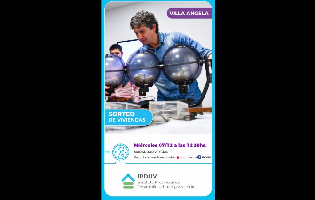 El Instituto Provincial de Desarrollo Urbano y Vivienda (Ipduv) concretará este miércoles el sorteo público de 25 unidades habitacionales para Villa Ángela. El sorteo se realizará en las instalaciones del Instituto de Vivienda (avenida Sarmiento 1801) a partir de las 12.30, conforme al cronograma de trabajo determinado por el organismo.