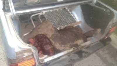 En el baúl del rodado llevaban dos cuartos traseros y una paleta del animal. Una pareja está aprehendida y el damnificado realizó la denuncia.